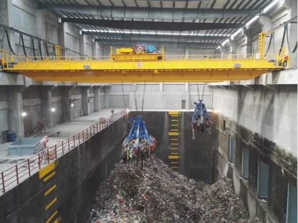 垃圾吊(又称:垃圾抓斗起重机、全自动垃圾抓斗起重机)其设计制造符合GB、FEM、IEC等国标和国际通用标准。其结构有单层车架、双层车架、单卷筒组和双卷筒组;称量综合精度≤±1%;具有手动控制、半自动控制和全自动控制三种控制模式,三种控制模式可自由切换,在任何一种自动模式下都具有手动优先功能。目前我国公司产品已广泛服务于日处理量在4800t/d,3000t/d,2400t/d,1200t/d,1000t/d,800t/d和小于600t/d的垃圾焚烧处理厂。
