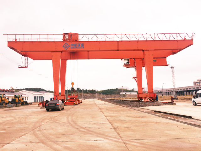 本起重机专用于铁路货场装卸、堆放20、40及45英尺国际标准集装箱。本机配备伸缩式集装箱吊具,用于吊运不同规格集装箱。吊具的开闭锁动作和伸缩由司机在操纵室操作。同时,为了适应不同的集装箱堆放方向和集装箱拖车行走方向,集装箱吊具可设计有旋转机构,可使集装箱任意旋转,以提高装卸效率。